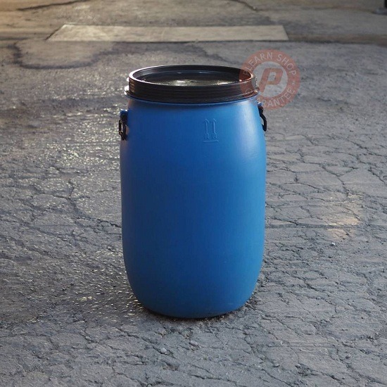 • ขายส่งถังสีน้ำเงินฝาเปิดสีดำ HDPE ถังใหม่ ราคาส่งขายถังสีน้ำเงินฝาเปิดสีดำทรงโอ่งก้นเรียบ Ø 58 ซม. สูง 94.8 ซม. น้ำหนัก 5 กก. ขนาด 200 ลิตร มีฝาปิดสีดำพร้อมเข็มขัดล็อคฝา ใช้เป็นถังบรรจุภัณฑ์ ถังใส่สารเคมี ถังหมักอาหารหมักดอง ถังบรรจุผง-บรรจุของเหลว ถังใส่น้ำยางพารา ใส่น้ำหมักชีวภาพ